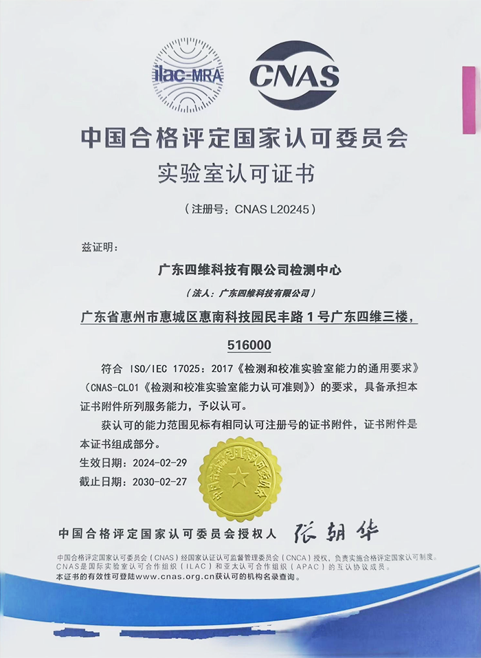 廣東四維科技有限公司檢測中心試驗場所超過600平方米,并已獲得防墜落裝置相關(guān)產(chǎn)品CNAS認(rèn)證,是同行業(yè)內(nèi)具有此項認(rèn)證資質(zhì)為數(shù)不多的檢測中心。本中心具備理化性能、機械性能、電氣性能、安全性能的試驗檢驗?zāi)芰,確保產(chǎn)品質(zhì)量和生產(chǎn)過程的控制。